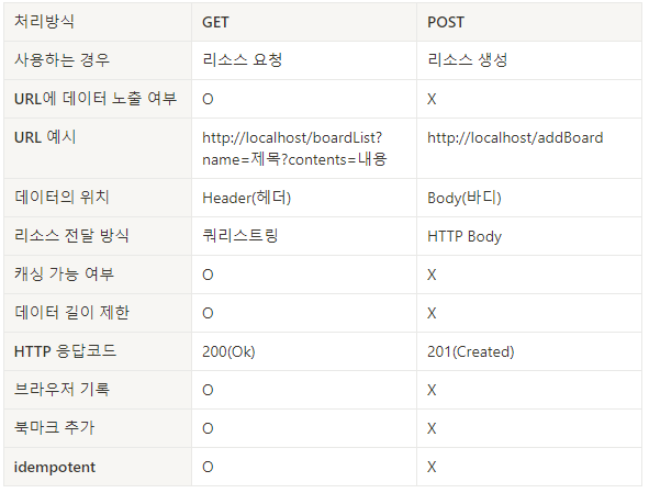 - 파라미터 내용 노출이 있으므로 민감한 데이터를 다룰때는 사용X