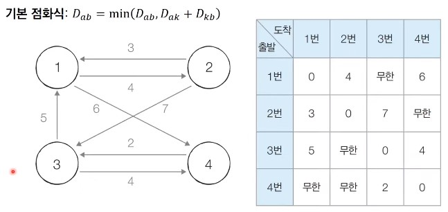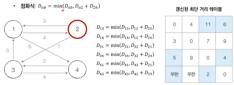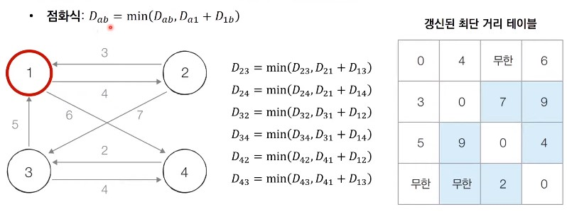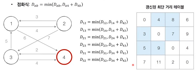 # 점화식에 따라 플로이드 워셜 알고리즘을 수행