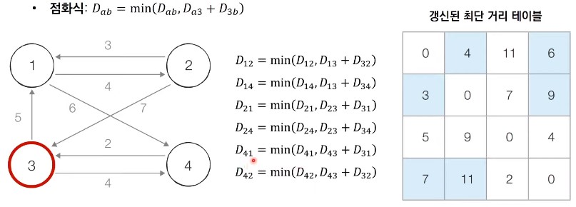 [Step 3] 3번 노드를 거쳐 가는 경우를 고려하여 테이블 갱신