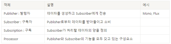 - 반응형 프로그래밍(Reactive Programming)을 구현하기 위해 Reactor라는 라이브러리를 사용한다.