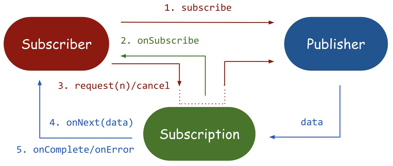 - [subscribe] Subscriber가 Publisher에 등록하고 데이터 스트림을 수신할 준비가 되었음을 Publisher에게 알림